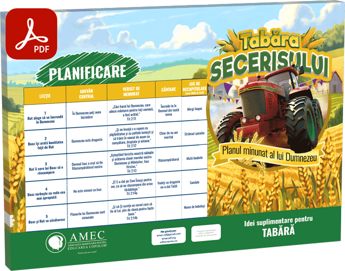„Tabăra secerișului – planul minunat al lui Dumnezeu” și „Rut și Răscumpărătorul” formează materialul pentru Tabăra Secerișului. Materialul are la bază povestirea biblică despre viața lui Rut și are scopul de a-i ajuta pe copii să Îl cunoască pe Domnul Isus, Răscumpărătorul, în mod personal.